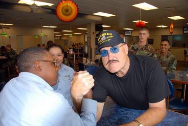 | Keywords: US Navy 071102-N-2468S-001 Professional wrestling champion Sgt. Slaughter arm-wrestles with Builder Constructionman Recruit Lars Triggs.jpg en GULFPORT Miss Nov 2 2007 - Professional wrestling champion Sgt Slaughter arm-wrestles with Builder Constructionman Recruit Lars Triggs during a tour of Naval Construction Battalion Center Slaughter was visiting the base to show support to all service members U S Navy photo by Mass Communication Specialist 1st Class Terry Spain RELEASED 2007-11-02 071102-N-2468S-001 Navy http //www navy mil/view_image asp id 52421 U S Navy photo by Mass Communication Specialist 1st Class Terry Spain PD-USGov-Military-Navy Naval Construction Battalion Center Gulfport Builder United States Navy Arm wrestling Sgt Slaughter |