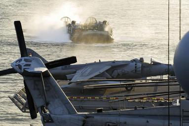 | Keywords: US Navy 071111-N-4010S-128 A landing craft air cushion (LCAC) from the.jpg en PO HANG Korea Nov 11 2007 A landing craft air cushion LCAC from the Dragons of Assault Craft Unit ACU 5 Det Western Pacific return to the amphibious assault ship USS Essex LHD 2 with Republic of Korea army soldiers participating in the Korean Interoperability Training Program Essex is the lead ship of the only forward-deployed U S Expeditionary Strike Group and serves as the flagship for CTF 76 the Navy's only forward-deployed amphibious force commander Task Force 76 is headquartered at White Beach Naval Facility Okinawa Japan with a detachment in Sasebo Japan U S Navy photo by Chief Mass Communication Specialist Ty Swartz Released 2007-11-11 071111-N-4010S-128 Navy http //www navy mil/view_image asp id 52798 U S Navy photo by Chief Mass Communication Specialist Ty Swartz PD-USGov-Military-Navy Images from US Navy location PO HANG Korea LCAC-57 ship 1993 |