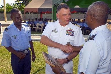 | Keywords: US Navy 071128-N-8483H-005 Africa Partnership Station united Sailors from the U.S. Navy, airmen from Ghanaian air force, and soldiers from the Ghanaian army during a musical performance at Takoradi Air Station.jpg en TAKORADI Ghana Nov 28 2007 Africa Partnership Station united Sailors from the U S Navy airmen from Ghanaian air force and soldiers from the Ghanaian army during a musical performance at Takoradi Air Station The Sailors from the Commander Naval Forces Europe CNE Band spent three days with their host country nationals preparing for the event APS is an international effort aiming to enhance regional maritime safety and security in West and Central Africa that will bring international training teams from 14 different countries to Cameroon Gabon Ghana Senegal and Sao Tome and Principe and support more than 20 humanitarian assistance projects in the region U S Navy photo by Mass Communication Specialist 3rd Class James Hills Released 2007-11-28 071128-N-8483H-005 Navy http //www navy mil/view_image asp id 53398 U S Navy photo by Mass Communication Specialist 3rd Class James Hills PD-USGov-Military-Navy United States Navy in Ghana 2007 United States Navy in Sekondi-Takoradi Handshakes involving the military Africa Partnership Station 2007 People of the Ghana Army People of Ghana in 2007 |