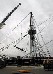 | Keywords: US Navy 071129-N-9793B-001 Members of the National Historical Center Detachment Boston remove the foresail yard from USS Constitution.jpg en CHARLESTOWN Mass Nov 29 2007 Members of the National Historical Center Detachment Boston remove the foresail yard from USS Constitution It was the last of 12 yards to be taken down from Old Ironsides during an ongoing two-year restoration period intended to bring the ship closer to its 1812 configuration At 210 years old USS Constitution is the oldest commissioned warship afloat in the world manned by 65 active duty U S Navy Sailors and visited by nearly half a million tourists annually U S Navy photo by Seaman Brian M Brooks Released 2007-11-29 071129-N-9793B-001 Navy http //www navy mil/view_image asp id 53794 U S Navy photo by Seaman Brian M Brooks PD-USGov-Military-Navy Military in Massachusetts USS Constitution in 21st century |