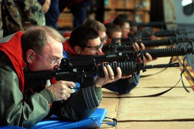 | Keywords: US Navy 071130-N-0555B-046 Rear Adm. James P. Wisecup, commander of Carrier Strike Group (CCSG) 7 fires an M-4 carbine from an aircraft elevator during a small arms exercise.jpg en PACIFIC OCEAN Nov 30 2007 Rear Adm James P Wisecup commander of Carrier Strike Group CCSG 7 fires an M-4 carbine from an aircraft elevator during a small arms exercise aboard the Nimitz-class nuclear-powered aircraft carrier USS Ronald Reagan CVN 76 Ronald Reagan is underway conducting tailored ship's training assessment U S Navy photo by Mass Communication Specialist 2nd Class Christopher D Blachly RELEASED 2007-11-30 071130-N-0555B-046 Navy http //www navy mil/view_image asp id 53410 U S Navy photo by Mass Communication Specialist 2nd Class Christopher D Blachly PD-USGov-Military-Navy Firearms training on USS Ronald Reagan CVN-76 Males with M4 carbine James P Wisecup |