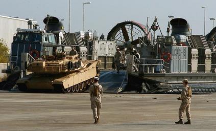 | Keywords: US Navy 080105-N-6597H-529 A landing craft air cushion (LCAC) hovercraft offloads an M-1A1 Abrams tank attached to the 11th Marine Expeditionary Unit.jpg en KUWAIT Jan 5 2008 A landing craft air cushion LCAC hovercraft offloads an M-1A1 Abrams tank attached to the 11th Marine Expeditionary Unit which is conducting training exercises in Kuwait The 11th MEU is deployed to the U S 5th Fleet area of responsibility and is working with coalition forces to maintain a naval and air presence in the region to deter destabilizing activities and safeguard the region's vital links to the global economy U S Navy photo by Mass Communication Specialist Seaman Jon Husman Released 2008-01-05 080105-N-6597H-529 Navy http //www navy mil/view_image asp id 55300 U S Navy photo by Mass Communication Specialist Seaman Jon Husman PD-USGov-Military-Navy Kuwait LCAC-8 ship 1987 M1A1 Abrams in United States Marine Corps service |