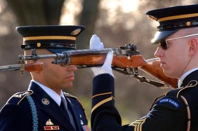 | Keywords: US Navy 080109-N-7948R-159 A member of the 3rd U.S. Infantry, The Old Guard, inspects a relieving guard's rifle before his watch at the Tomb of the Unknown Soldier at Arlington National Cemetery.jpg en ARLINGTON Va Jan 9 2008 A member of the 3rd U S Infantry The Old Guard inspects a relieving guard's rifle before his watch at the Tomb of the Unknown Soldier at Arlington National Cemetery The Tomb of the Unknowns is guarded 24 hours a day 365 days a year U S Navy photo by Mass Communication Specialist Seaman Michael Russell Released 2008-01-09 080109-N-7948R-159 Navy http //www navy mil/view_image asp id 54465 U S Navy photo by Mass Communication Specialist Seaman Michael Russell PD-USGov-Military-Navy Tomb of the Unknowns Changing of the Guard People with white gloves Males with sunglasses and hats 3rd Infantry Regiment United States Sergeants |