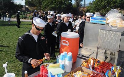| Keywords: US Navy 080112-N-1722M-004 Sailors assigned to the Nimitz-class nuclear-powered aircraft carrier USS Ronald Reagan (CVN 76) enjoy free food at Chase Palm Park during a free concert put on for their benefit.jpg en SANTA BARBARA Calif Jan 12 2008 Sailors assigned to the Nimitz-class nuclear-powered aircraft carrier USS Ronald Reagan CVN 76 enjoy free food at Chase Palm Park during a free concert put on for their benefit Reagan Sailors are on a scheduled port visit to Santa Barbara Calif U S Navy photo by Mass Communication Specialist 1st Class Michael Moriatis Released 2008-01-12 080112-N-1722M-004 Navy http //www navy mil/view_image asp id 54507 U S Navy photo by Mass Communication Specialist 1st Class Michael Moriatis PD-USGov-Military-Navy Santa Barbara California Aboard USS Ronald Reagan CVN-76 |