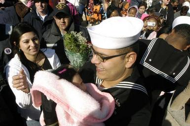 | Keywords: US Navy 080125-N-0486G-007 Culinary Specialist 2nd class Eber Varrazh hugs his newborn baby girl for the first time after he walked off the brow of The Guided-Missile Cruiser USS Vicksburg (CG 69).jpg en MAYPORT Fla Jan 25 2008 Culinary Specialist 2nd class Eber Varrazh hugs his newborn baby girl for the first time after he walked off the brow of The Guided-Missile Cruiser USS Vicksburg CG 69 Vicksburg returned home to Naval Station Mayport after a six-month Persian Gulf deployment U S Navy photo by Mass Communication Specialist 2nd Class Daniel Gay Released 2008-01-25 080125-N-0486G-007 Navy http //www navy mil/view_image asp id 54789 U S Navy photo by Mass Communication Specialist 2nd Class Daniel Gay PD-USGov-Military-Navy Culinary specialist United States Navy Naval Station Mayport USS Vicksburg CG-69 |