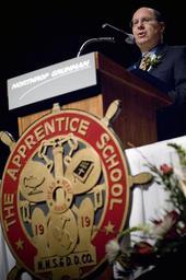 | Keywords: US Navy 080209-N-5549O-145 Secretary of the Navy (SECNAV) The Honorable Dr. Donald C. Winter delivers the commencement address to the Northrop Grumman Newport News Apprentice School Graduating Class of 2007.jpg en NEWPORT NEWS Va Feb 9 2007 Secretary of the Navy SECNAV The Honorable Dr Donald C Winter delivers the commencement address to the Northrop Grumman Newport News Apprentice School Graduating Class of 2007 Founded in 1919 the Apprentice School offers four-year tuition-free apprenticeships in 18 skilled trades to qualified men and women Apprentices work a regular 40-hour week and are paid for all work including time spent in academic classes U S Navy photo by Mass Communication Specialist 2nd Class Kevin S O'Brien Released 2007-02-09 080209-N-5549O-145 Navy http //www navy mil/view_image asp id 55142 U S Navy photo by Mass Communication Specialist 2nd Class Kevin S O'Brien PD-USGov-Military-Navy Images from US Navy location Newport News Virginia Donald C Winter |