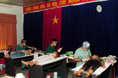 | Keywords: US Navy 080625-N-7498L-131 South Korean Navy Dentist Lt. Michael Sim, left, Canadian Army Dentist Lt. David Lee and East Meets West foundation Dental Director Capt. Charles Craft, perform tooth extractions on Vietnamese childre.jpg en NHA TRANG Vietnam June 25 2008 South Korean Navy Dentist Lt Michael Sim left Canadian Army Dentist Lt David Lee and East Meets West foundation Dental Director Capt Charles Craft perform tooth extractions on Vietnamese children as part of the Pacific Partnership dental civic action program The East Meets West volunteers from Vietnam the crew of the Military Sealift Command hospital ship USNS Mercy T-AH 19 as well as partner nations and other non-governmental organizations will partner to bring medical dental and engineering humanitarian civic assistance to those in the region U S Navy photo by Mass Communication Specialist 2nd Class Mark Logico Released 2008-06-25 080625-N-7498L-131 Navy http //www navy mil/view_image asp id 60696 U S Navy photo by Mass Communication Specialist 2nd Class Mark Logico PD-USGov-Military-Navy Children of Vietnam Military people of the United States with children Dentists at work Aboard USNS Mercy T-AH-19 Health in Nha Trang Republic of Korea Navy |