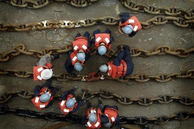 | Keywords: US Navy 080625-N-4790M-190 Deck Department Sailors assigned to the amphibious command ship USS Blue Ridge (LCC 19) fake out three shots of the starboard side anchor chain.jpg en YOKOSUKA Japan June 25 2008 Deck Department Sailors assigned to the amphibious command ship USS Blue Ridge LCC 19 fake out three shots of the starboard side anchor chain to perform maintenance on the swivel shot and detachable links during the ships Board of Inspection and Survey INSURV Blue Ridge serves under Commander Expeditionary Strike Group ESG 7/Task Force CTF 76 the Navy's only forward deployed amphibious force U S Navy photo by Mass Communication Specialist 2nd Class Andrew Meyers Released 2008-06-25 080625-N-4790M-190 Navy http //www navy mil/view_image asp id 60648 U S Navy photo by Mass Communication Specialist 2nd Class Andrew Meyers PD-USGov-Military-Navy United States Fleet Activities Yokosuka Aboard USS Blue Ridge LCC-19 Anchor chains |