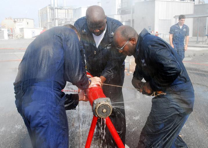 | Keywords: US Navy 080626-N-6863R-193 The aircraft carrier USS Carl Vinson (CVN 70) Sailors perform pipe-patching procedures during the Damage Control Olympics held at Farrier Firefighting School on board Naval Station Norfolk.jpg en NORFOLK Va June 26 2008 The aircraft carrier USS Carl Vinson CVN 70 Sailors perform pipe-patching procedures during the Damage Control Olympics held at Farrier Firefighting School on board Naval Station Norfolk The DC Olympics serve as a training tool for fleet commands to compete against each other via damage control procedures Carl Vinson is undergoing its scheduled refueling complex overhaul at Northrop Grumman Shipbuilding in Newport News U S Navy photo by Mass Communication Specialist Seaman Luis Ramirez Released 2008-06-26 080626-N-6863R-193 Navy http //www navy mil/view_image asp id 60929 U S Navy photo by Mass Communication Specialist Seaman Luis Ramirez PD-USGov-Military-Navy African American men Blue clothing male Farrier Firefighting School Images from US Navy location Norfolk Va June 2008 in the United States Men with glasses Men at work in Virginia Military people in 2008 People of the United States in 2008 Pictures by Mass Communication Specialists Red pipes Sailors from the United States Navy 2008 in Virginia 2008 photographs 21st-century men of the United States USS Carl Vinson CVN-70 Wet people 26 June |