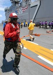 | Keywords: US Navy 080713-N-4856C-011 A Sailor runs to relieve a hose team member during a fire drill.jpg en ATLANTIC OCEAN July 13 2008 A Sailor runs to relieve a hose team member during a fire drill on the flight deck of the amphibious assault ship USS Iwo Jima LHD 7 during the Iwo Jima Expeditionary Strike Group composite unit training exercise COMPTUEX COMPTUEX provides a realistic training environment to ensure the strike group is capable and ready for its upcoming scheduled deployment U S Navy photo by Mass Communication Specialist Seaman Christopher L Clark Released 2008-07-13 080713-N-4856C-011 Navy http //www navy mil/view_image asp id 61336 U S Navy photo by Mass Communication Specialist Seaman Christopher L Clark PD-USGov-Military-Navy Aboard USS Iwo Jima LHD-7 |