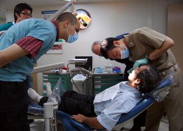 | Keywords: US Navy 080716-N-6387D-002 Sammy M. Baho, a University of California San Diego, Pre-Dental Society senior undergraduate student, looks on as South Korean navy Lt. Michael Sim performs a dental procedure.jpg en DILI East Timor July 16 2008 Sammy M Baho a University of California San Diego Pre-Dental Society senior undergraduate student looks on as South Korean navy Lt Michael Sim performs a dental procedure on a Timorese patient aboard the Military Sealift Command hospital ship USNS Mercy T-AH 19 Sim joined the Mercy crew to support the Pacific Partnership 2008 mission Pacific Partnership is a four-month deployment by Mercy to assist the governments of participating nations with medical dental and construction civic assistance programs U S Navy photo by Mass Communication Specialist 1st Class A Nick De La Cruz Released 2008-07-16 080716-N-6387D-002 Navy http //www navy mil/view_image asp id 61492 U S Navy photo by Mass Communication Specialist 1st Class A Nick De La Cruz PD-USGov-Military-Navy Aboard USNS Mercy T-AH-19 Republic of Korea Navy |