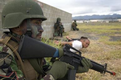 | Keywords: US Navy 080727-N-6430R-022 Indonesian marines conduct a practice weapons cache raid with U.S. Marines.jpg en KANEOHE Hawaii July 27 2008 Indonesian marines conduct a practice weapons cache raid with U S Marines assigned to 3rd Assault Amphibian Battalion during Rim of the Pacific RIMPAC 2008 RIMPAC is the world's largest multinational exercise and is scheduled biennially by the U S Pacific Fleet Participants include the United States Australia Canada Chile Japan the Netherlands Peru Republic of Korea Singapore and the United Kingdom U S Navy photo by Mass Communication Specialist Third Class Thomas L Rosprim/Released 2008-07-27 080727-N-6430R-022 Navy http //www navy mil/view_image asp id 62016 U S Navy photo by Mass Communication Specialist Third Class Thomas L Rosprim PD-USGov-Military-Navy Marine Corps Base Hawaii RIMPAC 2008 Camouflage facepainting Males with M16 rifle Republic of Indonesia Marine Corps |