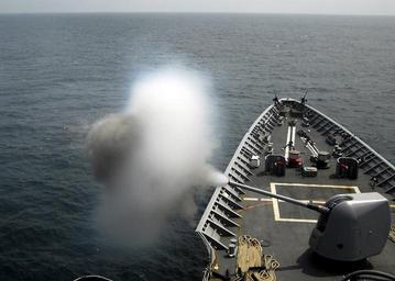| Keywords: US Navy 080727-N-4236E-155 A 5-inch MK-45 Mod 2 light weight gun fires during a live fire exercise aboard the guided-missile cruiser USS Vella Gulf (CG 72).jpg en ATLANTIC OCEAN July 27 2008 A 5-inch MK-45 Mod 2 light weight gun fires during a live fire exercise aboard the guided-missile cruiser USS Vella Gulf CG 72 Vella Gulf is participating in Joint Task Force Exercise JTFEX 08-4 as a part of the Iwo Jima Expeditionary Strike U S Navy photo by Mass Communication Specialist Seaman Chad R Erdmann/Released 2008-07-27 080727-N-4236E-155 Navy http //www navy mil/view_image asp id 62050 U S Navy photo by Mass Communication Specialist Seaman Chad R Erdmann PD-USGov-Military-Navy 5 /54 caliber Mark 45 gun firing Aboard USS Vella Gulf CG-72 |