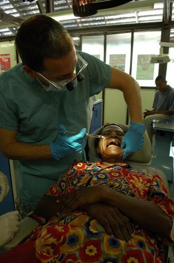 | Keywords: US Navy 080807-N-5086M-065 Army dentist Capt. Alex Smith, a U.S. Army dentist from New York, applies anesthesia to a patient during a dental civic action program.jpg en PORT MORESBY Papua New Guinea Aug 7 2008 Army dentist Capt Alex Smith a U S Army dentist from New York applies anesthesia to a patient during a dental civic action program at the University of Papua New Guinea School of Health and Medical Science during Pacific Partnership 2008 Smith is embarked aboard the Military Sealift Command hospital ship USNS Mercy T-AH 19 the main platform for Pacific Partnership 2008 Pacific Partnership assists the government of Papua New Guinea in providing local communities with various medical dental and engineering civic action programs providing focused humanitarian assistance U S Navy photo by Mass Communication Specialist 2nd Class Greg Mitchell/Released 2008-08-07 080807-N-5086M-065 Navy http //www navy mil/view_image asp id 62312 U S Navy photo by Mass Communication Specialist 2nd Class Greg Mitchell PD-USGov-Military-Navy Aboard USNS Mercy T-AH-19 Images from US Navy location Port Moresby Papua New Guinea |