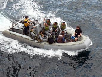 | Keywords: US Navy 080808-N-4431B-405 A Royal Brunei Navy visit, board, search, and seizure team waves to their counterparts aboard the amphibious dock landing ship USS Tortuga (LSD 46) after completing a joint training exercise.jpg en SOUTH CHINA SEA Aug 8 2008 A Royal Brunei Navy visit board search and seizure team waves to their counterparts aboard the amphibious dock landing ship USS Tortuga LSD 46 after completing a joint training exercise during Cooperation Afloat Readiness and Training CARAT 2008 U S Navy photo by Cmdr Daryl Borgquist/Released 2008-08-08 080808-N-4431B-405 Navy http //www navy mil/view_image asp id 62386 U S Navy photo by Cmdr Daryl Borgquist PD-USGov-Military-Navy Aboard USS Tortuga LSD-46 |