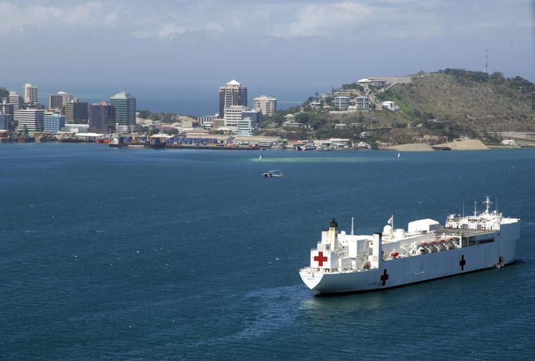 | Keywords: US Navy 080811-N-8878B-434 The Military Sealift Command hospital ship USNS Mercy (T-AH 19) anchored off the coast of Papua New Guinea in support of Pacific Partnership 2008.jpg en PORT MORESBY Papua New Guinea Aug 11 2008 The Military Sealift Command hospital ship USNS Mercy T-AH 19 anchored off the coast of Papua New Guinea in support of Pacific Partnership 2008 Pacific Partnership is a four-month humanitarian mission to Southeast Asia intended to build collaborative partnerships by providing engineering civic medical and dental assistance to the region U S Navy photo by Mass Communication Specialist 3rd Class Michael C Barton Released 2008-08-11 080811-N-8878B-434 Navy http //www navy mil/view_image asp id 62380 U S Navy photo by Mass Communication Specialist 3rd Class Michael C Barton PD-USGov-Military-Navy General views of USNS Mercy T-AH-19 Images from US Navy location Port Moresby Papua New Guinea Port Moresby |
