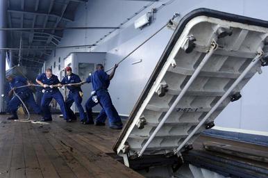 | Keywords: US Navy 080815-N-8546L-014 Sailors assigned to the engineering repair division aboard the amphibious command ship USS Blue Ridge (LCC 19) raise an external hatch to perform maintenance on the watertight gasket and moving parts.jpg en PACIFIC OCEAN Aug 15 2008 Sailors assigned to the engineering repair division aboard the amphibious command ship USS Blue Ridge LCC 19 raise an external hatch to perform maintenance on the watertight gasket and moving parts Blue Ridge is the flagship for Commander U S 7th Fleet U S Navy photo by Mass Communication Specialist 2nd Class Peter D Lawlor/Released 2008-08-15 080815-N-8546L-014 Navy http //www navy mil/view_image asp id 62524 U S Navy photo by Mass Communication Specialist 2nd Class Peter D Lawlor PD-USGov-Military-Navy Military people on duty Teamwork In United States Navy Gaskets Hatches African American sailors Aboard USS Blue Ridge LCC-19 |