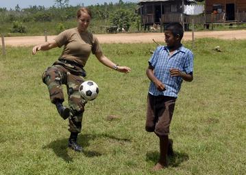 | Keywords: US Navy 080818-N-3595W-198 Information Systems Technician 2nd Class Danielle Church, assigned aboard the amphibious assault ship USS Kearsarge (LHD 3), plays soccer with a Nicaraguan child at the medical site in Betania during.jpg en BETANIA Nicaragua Aug 18 2008 Information Systems Technician 2nd Class Danielle Church assigned aboard the amphibious assault ship USS Kearsarge LHD 3 plays soccer with a Nicaraguan child at the medical site in Betania during of Continuing Promise 2008 Kearsarge is supporting the Caribbean phase of CP 2008 an equal-partnership mission between the United States Canada the Netherlands Brazil Nicaragua Panama Colombia Dominican Republic Trinidad and Tobago and Guyana U S Navy photo by Mass Communication Specialist 2nd Class Gina Wollman/Released 2008-08-18 080818-N-3595W-198 Navy http //www navy mil/view_image asp id 62862 U S Navy photo by Mass Communication Specialist 2nd Class Gina Wollman PD-USGov-Military-Navy Images from US Navy location BETANIA Nicaragua Aboard USS Kearsarge LHD-3 Information Systems Technician United States Navy |