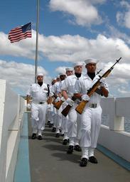 | Keywords: US Navy 080819-N-7974M-002 Sailors render honors at a scattering of ashes ceremony for 89-year-old Pearl Harbor Survivor Major Wheeler, who was aboard the minesweeper USS Widgeon (AM 22) during the attack on Pearl Harbor.jpg en PEARL HARBOR Aug 19 2008 Sailors render honors at a scattering of ashes ceremony for 89-year-old Pearl Harbor Survivor Major Wheeler who was aboard the minesweeper USS Widgeon AM 22 during the attack on Pearl Harbor Wheeler requested his ashes to be scattered at the memorial on Ford Island near his fallen shipmates The ceremony included a religious service a three-volley rifle salute and a bugler sounding Taps Also in attendance was Wheeler's local church choir who sang the Navy Hymn U S Navy photo by Blair Martin/Released 2008-08-19 080819-N-7974M-002 Navy http //www navy mil/view_image asp id 62799 U S Navy photo by Blair Martin PD-USGov-Military-Navy USS Utah Memorial M14 rifle Gun salutes |