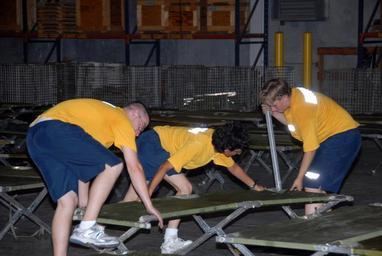 | Keywords: US Navy 080831-N-2468S-001 Seabees set up cots to prepare for Hurricane Gustav.jpg en GULFPORT Miss Aug 31 2008 Seabees assigned to Naval Construction Training Center NCTC Gulfport set up cots to prepare for Hurricane Gustav at the emergency shelter at Naval Construction Battalion Center Gulfport The U S Navy is contributing to the Hurricane Gustav humanitarian assistance operations being led by the Federal Emergency Mangagemnt Agency FEMA in conjunction with the Department of Defense U S Navy photo by Mass Communication Specialist 1st Class Terry Spain/Released 2008-08-31 080831-N-2468S-001 Navy http //www navy mil/view_image asp id 63280 U S Navy photo by Mass Communication Specialist 1st Class Terry Spain PD-USGov-Military-Navy Naval Construction Battalion Center Gulfport |