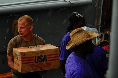| Keywords: US Navy 080910-N-4515N-247 Service members embarked aboard the amphibious assault ship USS Kearsarge (LHD 3) and citizens of Port au Prince, Haiti load a landing craft utility with supplies for distribution to areas affected by.jpg en PORT-AU-PRINCE Haiti Sept 10 2008 Service members embarked aboard the amphibious assault ship USS Kearsarge LHD 3 and citizens of Port au Prince Haiti load a landing craft utility with supplies for distribution to areas affected by recent hurricanes Kearsarge has been diverted from the scheduled Continuing Promise 2008 humanitarian assistance deployment in the western Caribbean to conduct hurricane relief operations in Haiti U S Navy photo by Mass Communication Specialist Seaman Apprentice Joshua Adam Nuzzo/Released 2008-09-10 080910-N-4515N-247 Navy http //www navy mil/view_image asp id 63865 U S Navy photo by Mass Communication Specialist Seaman Apprentice Joshua Adam Nuzzo PD-USGov-Military-Navy USS Kearsarge in Haiti 2008 Transport in Port-au-Prince 2008 in Port-au-Prince Landing craft utility |