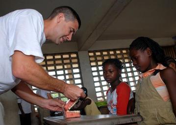 | Keywords: US Navy 080912-N-6544L-002 Cmdr. Istvan Hargitai demonstrates the proper technique for brushing teeth.jpg en DOUALA Cameroon Sept 12 2008 Cmdr Istvan Hargitai demonstrates the proper technique for brushing teeth to two Cameroonian students at the Bonadowito Public School during a presentation on oral hygiene Hargitai is part of the European region U S Navy soccer team touring three African nations; Cape Verde Cameroon and Gabon working to improve understanding and developing goodwill between the U S and its partner nations through sports music and community relations U S Navy photo by Mass Communication Specialist 2nd Class Rosa Larson/Released 2008-09-12 080912-N-6544L-002 Navy http //www navy mil/view_image asp id 63999 U S Navy photo by Mass Communication Specialist 2nd Class Rosa Larson PD-USGov-Military-Navy United States Navy in Douala Schools in Cameroon Dentistry Sailors from the United States Navy People of Cameroon |