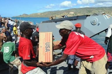 | Keywords: US Navy 080922-N-7955L-118 Haitian civilians help move boxes of cooking oil delivered by U.S. service members embarked aboard the amphibious assault ship USS Kearsarge (LHD 3) during a humanitarian assistance mission.jpg en GONAIVES Haiti September 22 2008 Haitian civilians help move boxes of cooking oil delivered by U S service members embarked aboard the amphibious assault ship USS Kearsarge LHD 3 during a humanitarian assistance mission Kearsarge has been diverted from the scheduled Continuing Promise 2008 humanitarian assistance deployment in the western Caribbean to conduct hurricane relief operations in Haiti U S Navy photo by Mass Communication Specialist 3rd Class Christopher Lange Released 2008-09-22 080922-N-7955L-118 Navy http //www navy mil/view_image asp id 64363 U S Navy photo by Mass Communication Specialist 3rd Class Christopher Lange PD-USGov-Military-Navy Port of Gonaïves Humanitarian aid in Gonaïves Transport in Gonaïves Ships in Gonaïves People of Gonaïves Military people of the United States in Gonaïves Aboard USS Kearsarge LHD-3 2008 in Gonaïves 0922 September 2008 in Haiti 22 |