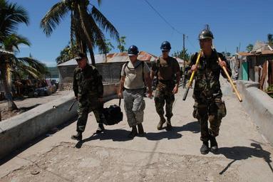 | Keywords: US Navy 080924-N-3595W-090 Personnel with Construction Battalion Mobile Unit (CBMU) 202 and Prime Based Engineering Emergency Force arry supplies to rebuild a water pipeline.jpg en BAINET Haiti Sept 25 2008 Personnel with Construction Battalion Mobile Unit CBMU 202 and Prime Based Engineering Emergency Force deployed with the amphibious assault ship USS Kearsarge LHD 3 carry supplies to rebuild a water pipeline destroyed by recent hurricanes Service members from the Navy Army Air Force Marines and Coast Guard along with medical personnel from the U S Public Health Service Canadian Army Air Force and Navy Brazil Project HOPE and International Aid embarked aboard Kearsarge are working together to conduct hurricane relief operations in Haiti U S Navy photo by Mass Communication Specialist 2nd Class Gina Wollman/Released 2008-09-25 080924-N-3595W-090 Navy http //www navy mil/view_image asp id 64576 U S Navy photo by Mass Communication Specialist 2nd Class Gina Wollman PD-USGov-Military-Navy Images from US Navy location BAINET Haiti |