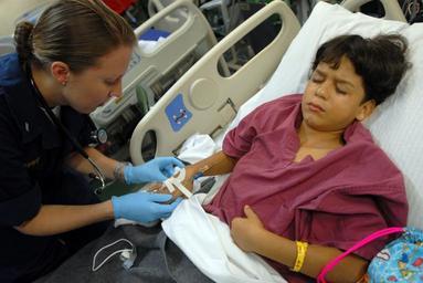 | Keywords: US Navy 081010-N-3595W-830 Lt. j.g. Megan Murphy takes care of twin brothers after eye surgery.jpg en CARIBBEAN SEA Oct 10 2008 Lt j g Megan Murphy takes care of twin brothers from the Dominican Republic after eye surgery aboard the amphibious assault ship USS Kearsarge LHD 3 The boys were born with a condition know as Strabimus or crossed eyes Kearsarge is the supporting the Caribbean phase of Continuing Promise 2008 an equal-partnership humanitarian/civic assistance mission involving the United States Canada the Netherlands Brazil France Nicaragua Colombia Dominican Republic Trinidad and Tobago and Guyana U S Navy photo by Mass Communication Specialist 2nd Class Gina Wollman/Released 2008-10-10 081010-N-3595W-830 Navy http //www navy mil/view_image asp id 65132 U S Navy photo by Mass Communication Specialist 2nd Class Gina Wollman PD-USGov-Military-Navy Aboard USS Kearsarge LHD-3 |
