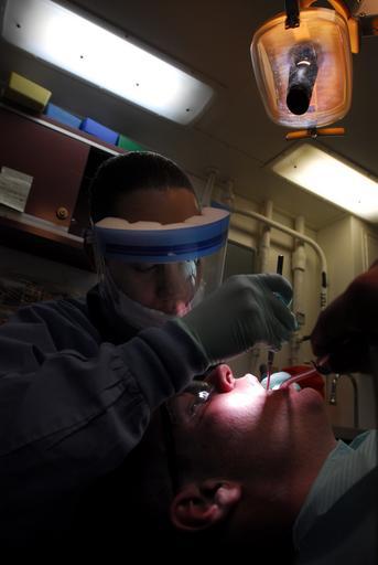 Keywords: US Navy 081011-N-9610C-007 ospital Corpsman Dami-anne Boykin gives Aviation Electronics Technician 3rd Class Michael Morgan his yearly tooth cleaning.jpg en PACIFIC OCEAN Oct 11 2008 Hospital Corpsman Dami-anne Boykin from Carrollton Ga gives Aviation Electronics Technician 3rd Class Michael Morgan from Hart Mich his yearly tooth cleaning in health services department's dental office aboard the Nimitz-class aircraft carrier USS John C Stennis CVN 74 Stennis is conducting pre-deployment exercises off the coast of Southern California U S Navy photo by Mass Communication Specialist 3rd Class Dmitry Chepusov/Released 2008-10-11 081011-N-9610C-007 Navy http //www navy mil/view_image asp id 65282 U S Navy photo by Mass Communication Specialist 3rd Class Dmitry Chepusov PD-USGov-Military-Navy Aboard USS John C Stennis CVN-74 Hospital Corpsman Aviation Electronics Technician Face shields |