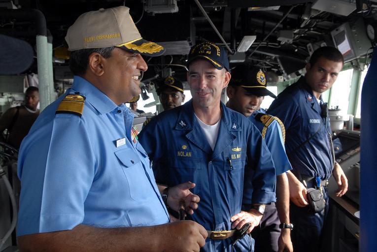 | Keywords: US Navy 081020-N-1635S-012 Capt. John P. Nolan, commanding officer of the Ticonderoga-class guided-missile cruiser USS Chancellorsville (CG 62), speaks with Rear Adm. Anil Chopra, flag officer in command of the Indian Navy's we.jpg en INDIAN OCEAN Oct 20 2008 Capt John P Nolan commanding officer of the Ticonderoga-class guided-missile cruiser USS Chancellorsville CG 62 speaks with Rear Adm Anil Chopra flag officer in command of the Indian Navy's western fleet during the Malabar 2008 exercise Indian Sailors visited Chancellorsville as spart of the exercise to learn about U S warship capabilities U S Navy photo by Mass Communication Specialist 3rd Class Joshua Scott/Released 2008-10-20 081020-N-1635S-012 Navy http //www navy mil/view_image asp id 65576 U S Navy photo by Mass Communication Specialist 3rd Class Joshua Scott PD-USGov-Military-Navy USS Chancellorsville CG-62 Anil Chopra admiral |