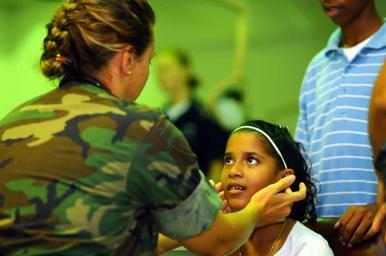 | Keywords: US Navy 081026-N-4515N-066 Lt. Cmdr. Kathaleen Sikes gives a young girl a routine check-up at the Arima District Health Facility.jpg en ARIMA Trinidad and Tobago Oct 26 2008 Lt Cmdr Kathaleen Sikes a Navy nurse embarked aboard the amphibious assault ship USS Kearsarge LHD 3 gives a young girl a routine check-up at the Arima District Health Facility as part of the partnership between Continuing Promise CP 2008 and Trinidad-Tobago Kearsarge is the primary platform for the Caribbean phase of the humanitarian/civic assistance mission CP 08 an equal-partnership mission involving the United States Canada the Netherlands Brazil Nicaragua Colombia Dominican Republic Trinidad and Tobago and Guyana U S Navy photo by Mass Communication Specialist Seaman Apprentice Joshua Adam Nuzzo/Released 2008-10-26 081026-N-4515N-066 Navy http //www navy mil/view_image asp id 65888 U S Navy photo by Mass Communication Specialist Seaman Apprentice Joshua Adam Nuzzo PD-USGov-Military-Navy Images from US Navy location ARIMA Trinidad and Tobago Aboard USS Kearsarge LHD-3 Women in the United States Navy |