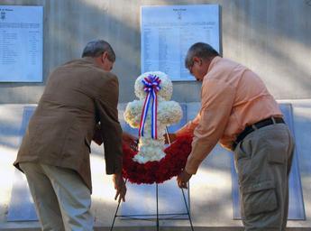 | Keywords: US Navy 081107-N-9689V-004 Former U.S. Navy.jpg en CORONADO Calif Nov 7 2008 Former U S Navy beach jumpers place a wreath in memory of one of their fallen comrades during the 5th annual U S Navy Beach Jumpers reunion at Naval Amphibious Base Coronado Navy Information Operations Command San Diego hosted the event which brings together former and retired beach jumpers each year to pay respects to their fallen comrades and those among them who have recently passed away Beach jumpers were WWII Korea and Vietnam U S Navy special warfare units specializing in deception and psychological warfare U S Navy photo by Mass Communication Specialist 3rd Class Joshua Valcarcel/Released 2008-11-07 081107-N-9689V-004 Navy http //www navy mil/view_image asp id 66270 U S Navy photo by Mass Communication Specialist 3rd Class Joshua Valcarcel PD-USGov-Military-Navy Vietnam Unit Memorial Monument Memorial wreaths |
