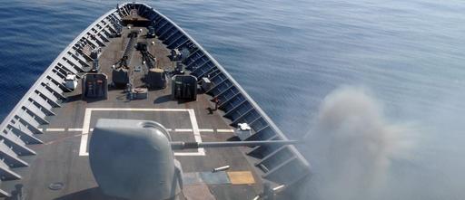 Keywords: US Navy 081107-N-9900B-002 The 5-Inch-54-caliber (Mk 45) gun is test-fired from the bow of the guided-missile cruiser USS Monterey (CG 61).jpg en GULF OF OMAN Nov 7 2008 The 5-Inch/54-caliber Mk 45 gun is test-fired from the bow of the guided-missile cruiser USS Monterey CG 61 Monterey and the Theodore Roosevelt Carrier Strike Group 8 are conducting operations in the U S 5th Fleet area of responsibility U S Navy photo by Mass Communication Specialist 2nd Class Remus Borisov/Released 2008-11-07 081107-N-9900B-002 Navy http //www navy mil/view_image asp id 66504 U S Navy photo by Mass Communication Specialist 2nd Class Remus Borisov PD-USGov-Military-Navy 5 /54 caliber Mark 45 gun firing Aboard USS Monterey CG-61