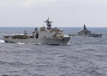 | Keywords: US Navy 081119-N-4010S-168 The amphibious dock landing ship USS Harpers Ferry (LSD 49) steams in formation with the Japanese Maritime Self-Defense Force destroyer JS Haruna (DDH 141).jpg JS Haruna DDH-141 U S Navy and Japan Maritime Self-Defense Force ships assigned to the George Washington Carrier Strike Group and the Essex Expeditionary Strike Group during the bilateral exercise ANNUALEX ANNUALEX is a yearly exercise with the U S Navy and the Japan Maritime Self-Defense Force to improve working relations between the two navies U S Navy Photo by Chief Mass Communication Specialist Ty Swartz/Released 2008-11-19 081119-N-4010S-168 Navy http //www navy mil/view_image asp id 66668 U S Navy Photo by Chief Mass Communication Specialist Ty Swartz PD-USGov-Military-Navy General views of USS Harpers Ferry LSD-49 JS Haruna DDH-141 |
