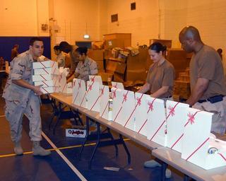 | Keywords: US Navy 081124-N-7862M-006 Sailors pack boxes supporting Commander, Navy Installation Command-sponsored holiday gift box program.jpg en MIDDLE EAST Nov 24 2008 Sailors assigned to Naval Support Activity NSA Bahrain pack boxes supporting Commander Navy Installation Command-sponsored holiday gift box program More than 200 Sailors from NSA Bahrain and its 80 tenant commands packaged more than 10 000 boxes which will be delivered to forward-deployed Sailors serving in the remote areas of Navy Region Southwest Asia U S Navy photo by Mass Communication Specialist 2nd Class Stephen Murphy/Released 2008-11-24 081124-N-7862M-006 Navy http //www navy mil/view_image asp id 66977 U S Navy photo by Mass Communication Specialist 2nd Class Stephen Murphy PD-USGov-Military-Navy Middle East |