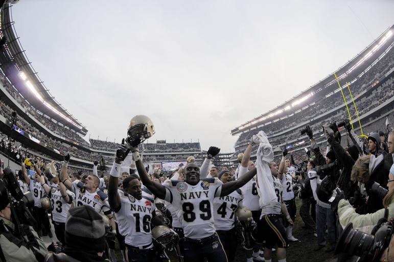| Keywords: US Navy 081206-N-4565G-983 The US Naval Academy Midshipmen run off the field after beating the US Military Academy Black Knights 34-0 in the 109th Army-Navy college football game (Lincoln Financial Field, Philadelphia).jpg en PHILADELPHIA Dec 6 2008 The U S Naval Academy Midshipmen run off the filed after beating the U S Military Academy Black Knights 34 to 0 in the 109th Army-Navy college football game at Lincoln Financial Field in Philadelphia U S Navy photo by Mass Communication Specialist 2nd Class Tommy Gilligan/Released 2008-12-06 081206-N-4565G-983 Navy http //www navy mil/view_image asp id 67172 U S Navy photo by Mass Communication Specialist 2nd Class Tommy Gilligan PD-USGov-Military-Navy 2008 Army-Navy Game |