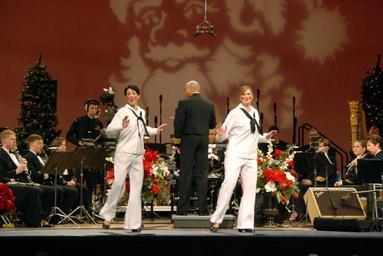 | Keywords: US Navy 081220-N-0773H-067 Musician 1st Class Amanda Polychronis and Musician 1st Class Jennifer Stothoff perform as toy soldiers for Navy Band performance of.jpg en WASHINGTON D C Dec 20 2008 Musician 1st Class Amanda Polychronis left and Musician 1st Class Jennifer Stothoff perform as toy soldiers for the Navy Band performance of Parade of the Wooden Soldiers at DAR Constitution Hall as part of the annual holiday concert the Navy Band performs in Washington D C The concert Season of Magic played to a capacity crowd U S Navy photo by Chief Musician Stephen Hassay/Released 2008-12-20 081220-N-0773H-067 Navy http //www navy mil/view_image asp id 67562 U S Navy photo by Chief Musician Stephen Hassay PD-USGov-Military-Navy Christmas in Washington D C Musician United States Navy |
