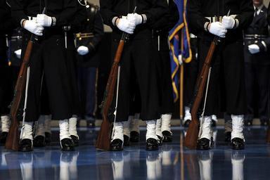 | Keywords: US Navy 090106-F-6655M-277 Members of the U.S. Navy Ceremonial Guard stand at attention during the armed forces full-honor farewell to President George W. Bush.jpg en ARLINGTON Va Jan 6 2009 Members of the U S Navy Ceremonial Guard stand at attention during the armed forces full-honor farewell to President George W Bush at Fort Myer in Arlington Va Secretary of Defense Robert Gates awarded the president the Department of Defense Medal for Distinguished Public Service at the ceremony U S Air Force photo by Tech Sgt Jerry Morrison/Released 2009-01-06 090106-F-6655M-277 Navy http //www navy mil/view_image asp id 67718 U S Air Force photo by Tech Sgt Jerry Morrison PD-USGov-Military-Navy Fort Myer Virginia |