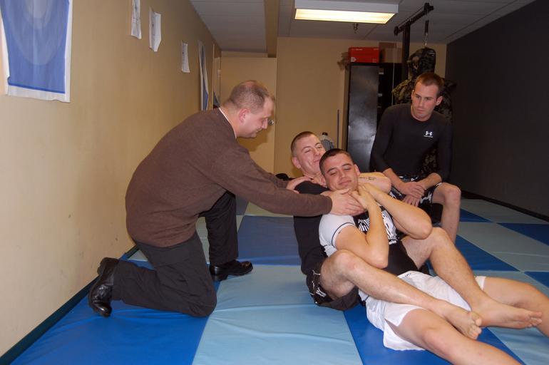 | Keywords: US Navy 090124-N-2425L-002 Master-at-Arms 2nd Class Phillip Staats, from the Naval Air Station (NAS) Jacksonville Security Department instructs Aviation Structural Mechanic Airman William Mastorio on how to apply a choke hold.jpg en JACKSONVILLE Fla Jan 24 2009 Master-at-Arms 2nd Class Phillip Staats from the Naval Air Station NAS Jacksonville Security Department left instructs Aviation Structural Mechanic Airman William Mastorio on how to apply a choke hold on Aviation Machinist's Mate 3rd Class Taylor Proctor as Aviation Machinist's Mate 3rd Class Greg Baker looks on Staats is an instructor in the sport of Submission Grappling and created a team from NAS Jax that participates in tournaments throughout the state U S Navy photo by Kaylee LaRocque/Released 2009-01-24 090124-N-2425L-002 Navy http //www navy mil/view_image asp id 68620 U S Navy photo by Kaylee LaRocque PD-USGov-Military-Navy 2009 at Naval Air Station Jacksonville Master-at-arms Rear naked chokes Back mount grappling |