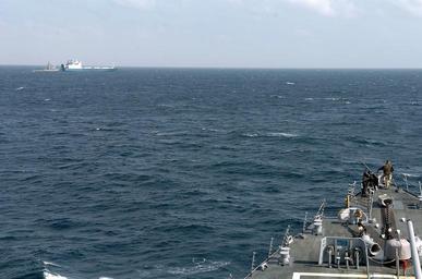 | Keywords: US Navy 090206-N-3931M-158 A watch stander on the bow of USS Mahan (DDG 87) monitors the fleet ocean tug USNS Catawba (T-ATF 168) as it makes preparations to transfer provides fuel and fresh water to Motor Vessel Faina.jpg en SOMALIA Feb 6 2009 A watch stander on the bow of USS Mason DDG 87 monitors the fleet ocean tug USNS Catawba T-ATF 168 as it makes preparations to transfer provides fuel and fresh water to Motor Vessel Faina Somali pirates released the Motor Vessel Faina Feb 5 after holding it for more than four months The U S Navy has remained within visual range of the ship and maintained a 24-hour 7-days a week presence since it was captured The Belize-flagged cargo ship is owned and operated by Kaalbye Shipping Ukraine and is carrying a cargo of Ukrainian T-72 tanks and related equipment The ship was attacked on Sept 25 and forced to proceed to anchorage off the Somali Coast U S 5th Fleet conducts maritime security operations to promote stability and regional economic prosperity U S Navy photo by Mass Communication Specialist 1st Class Michael R McCormick/Released 2009-02-06 090206-N-3931M-158 Navy http //www navy mil/view_image asp id 68590 U S Navy photo by Mass Communication Specialist 1st Class Michael R McCormick PD-USGov-Military-Navy Combined Task Force 151 USNS Catawba T-ATF-168 USS Mason DDG-87 Faina ship 1978 |