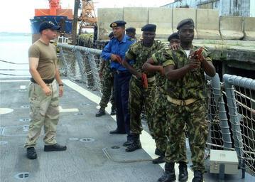 | Keywords: US Navy 090209-N-9849P-046 Fire Controlman 2nd Class Chris Hann trains Mozambique Marines aboard the the guided-missile frigate USS Robert G. Bradley (FFG 49).jpg en MAPUTO Mozambique Feb 9 2009 Fire Controlman 2nd Class Chris Hann trains Mozambique Marines aboard the the guided-missile frigate USS Robert G Bradley FFG 49 on visit board search and seizure techniques Robert G Bradley is making the first ever Africa Partnership Station port visit to Mozambique where the crew will conduct a range of training community service projects and cultural activities U S Navy photo/Released 2009-02-09 090209-N-9849P-046 Navy http //www navy mil/view_image asp id 68709 U S Navy photo PD-USGov-Military-Navy Fire Controlman Aboard USS Forrest Sherman DDG-98 Africa Partnership Station 2009 Africa Partnership Station in Mozambique |