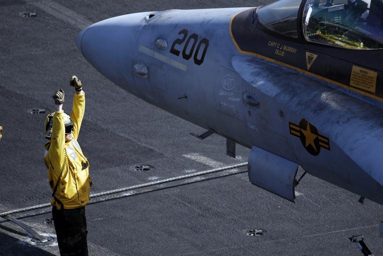 Keywords: US Navy 090215-N-8517C-803 Aviation Boatswain's Mate (Handling) 1st Class Beau Pepin gives hand signals to the pilot of an F-A-18C.jpg en PACIFIC OCEAN Feb 15 2009 Aviation Boatswain's Mate Handling 1st Class Beau Pepin from Center City Minn gives hand signals to the pilot of an F/A-18C from the Death Rattlers of Marine Strike Fighter Squadron VMFA 323 during flight operations on the flight deck aboard the Nimitz-class aircraft carrier USS John C Stennis CVN 74 John C Stennis and Carrier Air Wing CVW 9 are on a scheduled six-month deployment to the western Pacific Ocean U S Navy photo by Mass Communication Specialist 1st Class Denny Cantrell/Released 2009-02-15 090215-N-8517C-803 Navy http //www navy mil/view_image asp id 68861 U S Navy photo by Mass Communication Specialist 1st Class Denny Cantrell PD-USGov-Military-Navy Aviation Boatswain's Mates Handlers 200 number Aboard USS John C Stennis CVN-74 Taken with Nikon D200 ISO speed rating 160 |