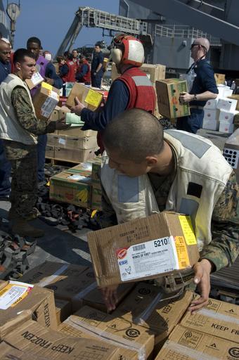 | Keywords: US Navy 090216-N-1251W-147 Sailors and Marines aboard the amphibious dock landing ship USS Harpers Ferry (LSD 49) form a working party to move stores from the ship's flight deck during a vertical replenishment.jpg en GULF OF THAILAND Feb 16 2009 Sailors and Marines aboard the amphibious dock landing ship USS Harpers Ferry LSD 49 form a working party to move stores from the ship's flight deck during a vertical replenishment with the Military Sealift Command dry cargo/ammunition ship USNS Richard E Byrd T-AKE 4 Harpers Ferry is taking part in Exercise Cobra Gold an annual Thailand and U S co-sponsored joint coalition multinational military exercise designed to train a Thai U S and Singaporean Coalition Task Force The exercise will also include humanitarian civic action projects with participating nations from Indonesia Japan Singapore Thailand and the U S U S Navy photo by Mass Communication Specialist 2nd Class Matthew R White/Released 2009-02-16 090216-N-1251W-147 Navy http //www navy mil/view_image asp id 69267 U S Navy photo by Mass Communication Specialist 2nd Class Matthew R White PD-USGov-Military-Navy Aboard USS Harpers Ferry LSD-49 |
