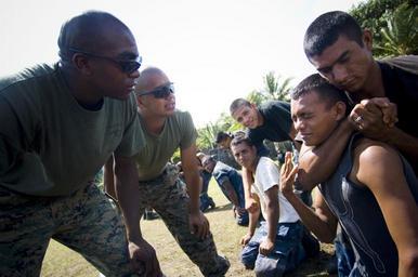 | Keywords: US Navy 090218-N-5549O-152 Marines and Sailors assigned to Southern Partnership Station provide martial arts training to Nicaraguan Sailors.jpg en EL BLUFF Nicaragua Feb 18 2009 Marines and Sailors assigned to Southern Partnership Station provide martial arts training to Nicaraguan Sailors Training teams from Navy Expeditionary Training Command Naval Criminal Investigative Service and the Marine Corps Training and Advisory Group are providing instruction in maritime interdiction officer the Marine Corps Martial Arts Program small boat maintenance and repair small boat basic coxswain skills and port security Southern Partnership Station is a training mission to Central America South America and the Caribbean Basin U S Navy photo by Mass Communication Specialist 2nd Class Kevin S O'Brien/Released 2009-02-18 090218-N-5549O-152 Navy http //www navy mil/view_image asp id 68894 U S Navy photo by Mass Communication Specialist 2nd Class Kevin S O'Brien PD-USGov-Military-Navy Images from US Navy location EL BLUFF Nicaragua Southern Partnership Station 2009 |