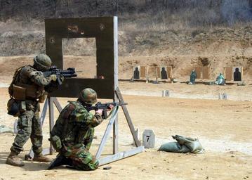| Keywords: US Navy 090317-N-9573A-004 Marines and the Republic of Korea (ROK) Marine Infantry Company are collaborating in a combined combat marksmanship shoot.jpg en RODRIGUEZ RANGE Republic of Korea March 17 2009 Marines from the 31st Marine Expeditionary Unit 31st MEU and the Republic of Korea ROK Marine Infantry Company are collaborating in a combined combat marksmanship shoot The Marines are participating in Exercise Key Resolve/Foal Eagle 2009 an annual joint exercise involving forces from both the United States and the Republic of Korea U S Navy photo by Mass Communication Specialist 1st Class Bobbie G Attaway/Released 2009-03-17 090317-N-9573A-004 Navy http //www navy mil/view_image asp id 69713 U S Navy photo by Mass Communication Specialist 1st Class Bobbie G Attaway PD-USGov-Military-Navy Images from US Navy location RODRIGUEZ RANGE Republic of Korea Foal Eagle 2009 Daewoo K2 Advanced Combat Optical Gunsight on M16 rifle |