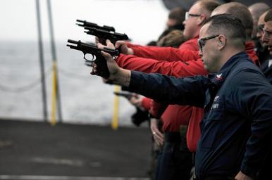 | Keywords: US Navy 090317-N-3610L-621 Aviation Ordnanceman 2nd Class Jeffery Thompson reaches for his second magazine of ammunition during a live-fire exercise aboard the aircraft carrier USS Ronald Reagan (CVN 76).jpg en PACIFIC OCEAN March 17 2009 Aviation Ordnanceman 2nd Class Jeffery Thompson reaches for his second magazine of ammunition during a live-fire exercise aboard the aircraft carrier USS Ronald Reagan CVN 76 The Ronald Reagan weapons department is trained in a variety of weapons including 9mm pistols grenades and 50 caliber machine guns Ronald Reagan is underway conducting sustainment exercises in the Pacific Ocean U S Navy photo by Mass Communication Specialist 3rd Class Torrey William Lee/Released 2009-03-17 090317-N-3610L-621 Navy http //www navy mil/view_image asp id 69765 U S Navy photo by Mass Communication Specialist 3rd Class Torrey William Lee PD-USGov-Military-Navy Aviation Ordnanceman Firearms training on USS Ronald Reagan CVN-76 Beretta 92 |