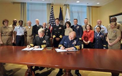 | Keywords: US Navy 090401-N-8273J-003 Chief of Naval Operations (CNO) Adm. Gary Roughead, left, and Coast Guard Commandant Adm. Thad W. Allen sign a memorandum of agreement for the Safe Harbor program during a signing ceremony at the Pent.jpg en WASHINGTON April 1 2009 Chief of Naval Operations CNO Adm Gary Roughead left and Commandant of the Coast Guard Adm Thad W Allen sign a memorandum of agreement for the Safe Harbor program during a signing ceremony at the Pentagon The agreement reflects the Navy and Coast Guard's commitment to providing a lifetime of individually tailored coordinated non-medical care to seriously wounded ill or injured service members and their families U S Navy photo by Mass Communication 1st Class Tiffini M Jones/Released 2009-04-01 090401-N-8273J-003 Navy http //www navy mil/view_image asp id 70230 U S Navy photo by Mass Communication 1st Class Tiffini M Jones PD-USGov-Military-Navy Interior of The Pentagon Gary Roughead in 2009 |