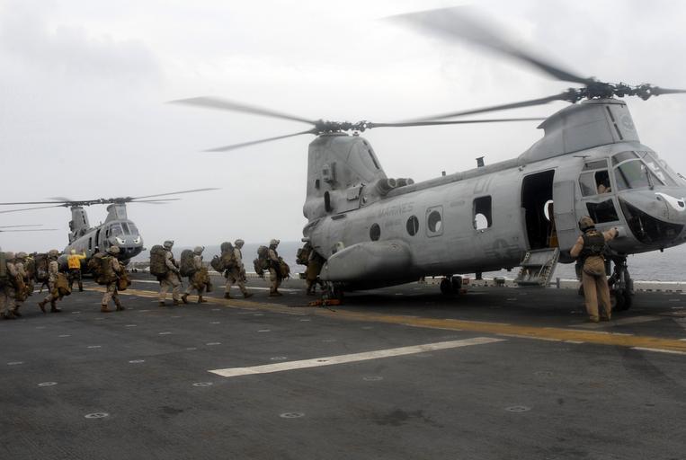 | Keywords: US Navy 090401-N-6552M-070 Marines from the 13th Marine Expeditionary Unit (13th MEU) embarked aboard the amphibious assault ship USS Boxer (LHD 4) board a CH-46 Sea Knight helicopter.jpg en GULF OF ADEN April 1 2009 Marines from the 13th Marine Expeditionary Unit 13th MEU embarked aboard the amphibious assault ship USS Boxer LHD 4 board a CH-46 Sea Knight helicopter to engage in readiness drills near the Horn of Africa Boxer is deployed as part of Boxer Amphibious Readiness group/13th MEU supporting maritime security operations in the U S 5th fleet area of responsibility U S Navy photo by Mass Communication Specialist 2nd Class Christopher Menzie/Released 2009-04-01 090401-N-6552M-070 Navy http //www navy mil/view_image asp id 70408 U S Navy photo by Mass Communication Specialist 2nd Class Christopher Menzie PD-USGov-Military-Navy Aboard USS Boxer LHD-4 CH-46 US Marine Corps |