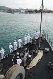 | Keywords: US Navy 090403-N-7843A-064 Sailors assigned to the mine countermeasures ship USS Patriot (MCM 7) man the rails before entering port in Ishigaki, Japan.jpg en ISHIGAKI Japan April 3 2009 Sailors assigned to the mine countermeasures ship USS Patriot MCM 7 man the rails before entering port in Ishigaki Japan Patriot and USS Guardian MCM 5 are making a goodwill port visit to Ishigaki U S Navy photo by Lt Cmdr Denver Applehans/Released 2009-04-03 090403-N-7843A-064 Navy http //www navy mil/view_image asp id 70312 U S Navy photo by Lt Cmdr Denver Applehans PD-USGov-Military-Navy Images from US Navy location ISHIGAKI Japan Manning the rail in the United States Navy Ships entering port |